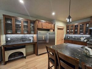 Have you ever dreamed of living on the river? Here is your chance. This custom home, built in 2020, is located on the Middle Fork of the Payette River and is designed for year-round living. The property has no CCRs or HOA, providing the freedom to bring all of your outdoor equipment. The beautiful main residence includes an attached apartment and offers a total of 3 bedrooms, 3.5 bathrooms, and 2 kitchens. The apartment itself features 1 bedroom, a bathroom, a kitchen, a living and dining area, laundry facilities, and a single-car garage. For storage and hobbies, the property includes three garages-including an RV bay-and a workshop. You can enjoy the large deck for summer entertaining or watching the local wildlife. Additionally, the home is equipped with Wi-Fi and is protected with two generators and a whole-house surge protector. Home is as above the 500 year flood level according to FEMA preliminary Data website.