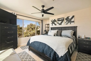 Uniquely located west of Mission Blvd and just steps from the beach access stairs in North Pacific Beach, this fully furnished 4BR/3.5BA home offers excellent outdoor spaces, peak ocean views, solar, A/C, and an attached side-by-side 2-car garage. The ground floor includes a spacious gated patio, one ensuite bedroom, and direct garage access with laundry. The second floor features a large living room with fireplace, dining area, expansive kitchen with gas cooking, walk-in pantry, breakfast bar, two decks, and a half bath. The third floor includes three bedrooms and two baths; the primary suite and one secondary bedroom enjoy peak ocean views.
