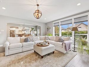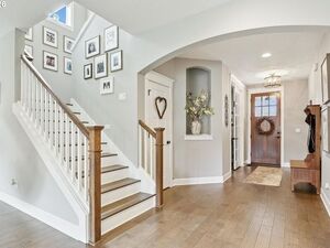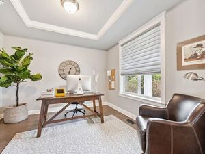 This newer luxury home in Sunnybrook Ridge has it all! It features a gorgeous yard and great location, with easy access to schools, shopping, and I-205. The inviting front porch welcomes you and your guests in from the moment they arrive. The grand entrance has high ceilings and an art nook. The office is located near the entrance with a door that provides privacy for your workspace.