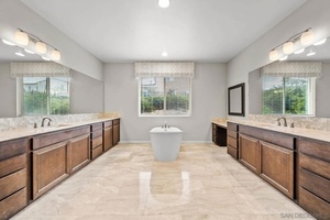 Dual vanities with soaking tub