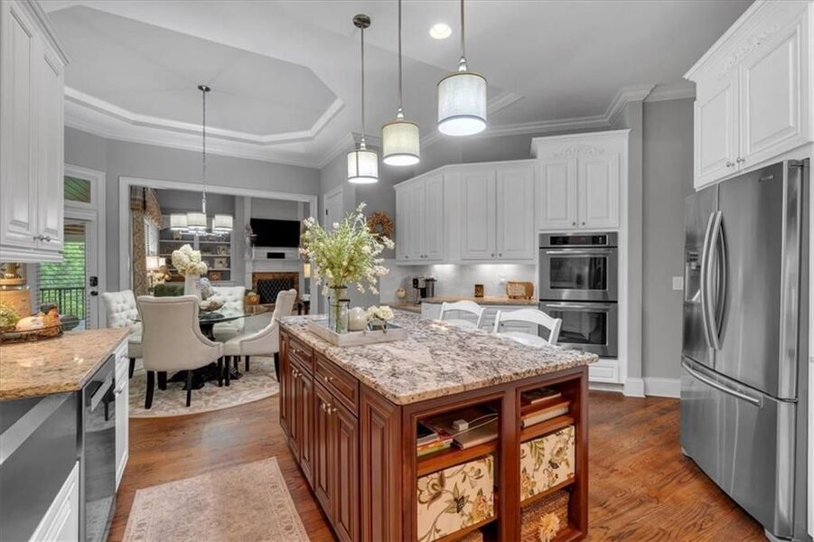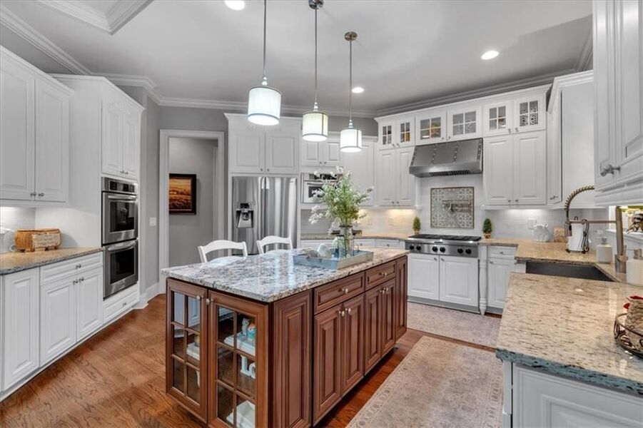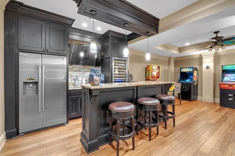 Your Dreamy Oasis Awaits! Welcome to this impeccably maintained and thoughtfully upgraded home that blends luxury, smart technology, and comfort in every corner. From the moment you enter, you’ll notice the attention to detail from 4 and 5 piece crown moldings in the main living areas to the fully remodeled gourmet kitchen and master suite. The kitchen was updated in 2021 with white cabinetry, added storage, granite counters, a large island, pot filler, stainless vent hood, commercial-grade pull faucet, and a Bosch 800 Series dishwasher (2024). Oversize Master suite features sitting room with fireplace, The spa-inspired master suite includes heated floors in both the bathroom and closets, custom soft-close cabinetry, a walk-in shower with multiple heads and an exterior window, leathered granite counters, and integrated TV mounts for the tub and shower areas. The finished basement (2014) adds an expansive entertainment space, including a full bar with granite counters and built-in appliances, a theater room with sound-dampening trim and LED tray lighting, a Gym, a second master suite, a bathroom with heated floors, heated towel warmer, walk in shower with twin independent water line heads, a game room, media storage, and sealed floors and walls for moisture protection. For added convenience there is a Laundry room on the main and a laundry closet upstairs.