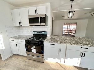 This beautifully updated home on a 0.35 acre lot on a quiet street boasts 3 bedrooms, 2 bathrooms, new kitchen, new cabinets and vanities, new light fixtures, a brand new roof, and a 2-car garage that has been converted to unofficial living space with one bedroom, a walk-in closet, and a “living room” area with a sliding glass door to the very spacious backyard.