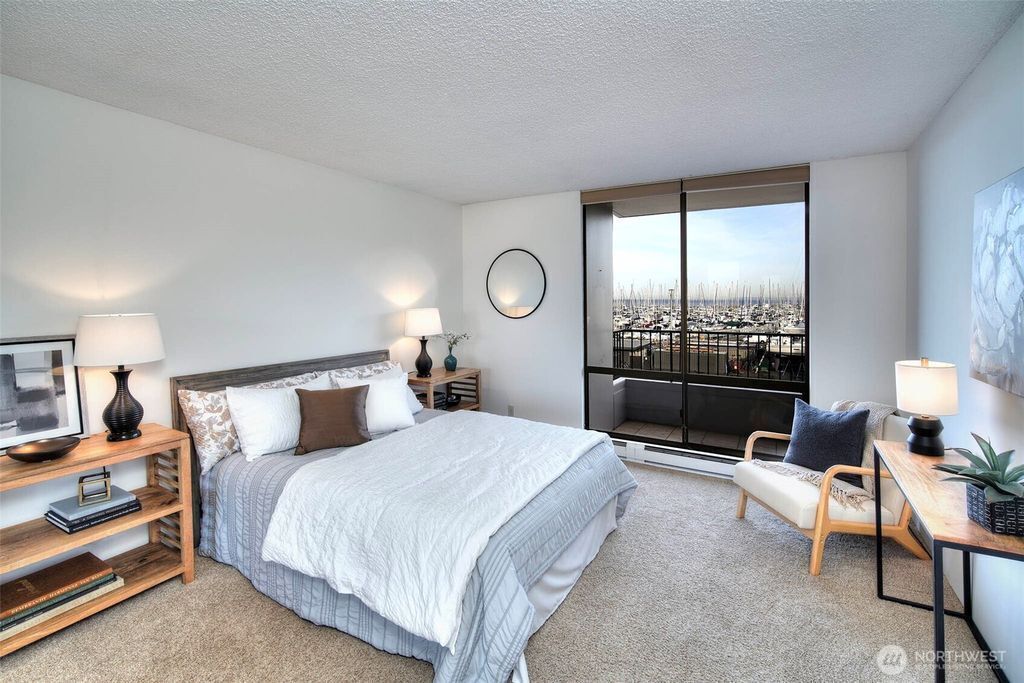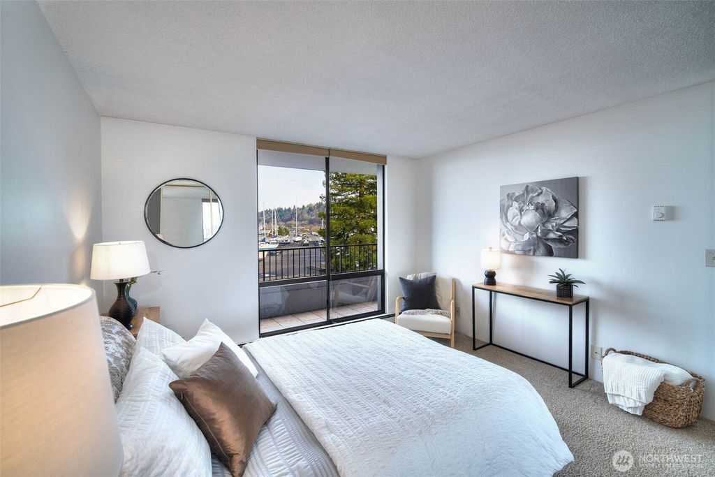 You’ll never tire of watching the dancing masts of Shilshole Marina and the billowing sails of boats traversing the Sound. This chic, thoughtfully remodeled 1 bedroom retreat offers a front-row seat to it all. Step onto the deck to take in views of the sun setting behind the snow-capped Olympics, whether you’re enjoying a leisurely supper al fresco or tending to your thriving container garden. Explore Sunset West’s many amenities including 24 hour security, outdoor pool & spa, game room, fully equipped hobby shop, exercise and party rooms, RV/boat parking, sauna, and electric car charging stations. Embraced by 11 acres of manicured grounds, a stone’s throw to Ray’s Boathouse, Golden Gardens Park, the Burke Gilman Trail and minutes to downtown Ballard…… It’s Resort Living - In City!