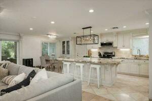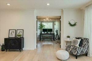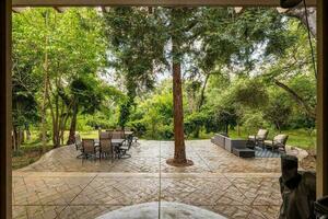 Nestled on a serene one-acre lot, this remarkable single-story home checks all the boxes. Step inside to discover a meticulously updated interior boasting a modern open concept kitchen, renovated baths, and beautiful engineered hardwood floors that flow seamlessly throughout. Outside entertain effortlessly on the spacious patio with outdoor kitchen, overlooking lush greenery and a seasonal creek. Positioned in a coveted cul-de-sac enclave of just four residences, this location offers both a secluded neighborhood while being mere minutes away from the freeway, local shops and restaurants. Experience the epitome of suburban luxury in this hidden gem of a home.