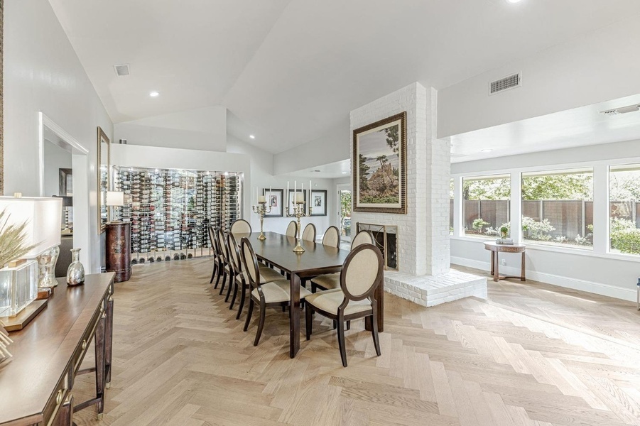 Nestled in the heart of Arden Oaks, this exquisite estate blends luxury and warmth with thoughtfully curated amenities. Stunning herringbone wood flooring flows throughout the first level, showcasing an elegant glass-enclosed, temperature-controlled wine closet. The chef’s kitchen boasts Thermador appliances, a waterfall marble island, farmhouse sink, walk-in pantry, and a separate butler’s kitchen (scullery) for effortless prep. Built for entertaining, it features four ovens, making hosting a breeze.