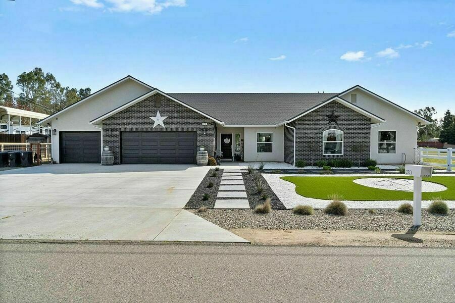 Stunning custom-built 4-bedroom, 3-bathroom home on a desirable corner lot in Madera Ranchos. Built in 2021, this 2,642 sq. ft. home sits on 1.3+ acres with vinyl fencing and a pasture, offering privacy and room to roam. Thoughtful design includes elegant archways and a spacious great room that flows into the chef’s kitchen with stainless steel appliances, extensive storage, a large island, and a newer dishwasher and garbage disposal. The expansive owner’s suite features a spa-like bathroom with a walk-in shower and large closet. An isolated guest bedroom provides added privacy, and a mudroom near the garage and laundry room adds convenience. Owned solar with no true-up bill to date, and two electric water heaters provide consistent hot water. Custom concrete work and low-maintenance front landscaping enhance curb appeal, and the 3-car garage offers ample storage. Close to Liberty High School, this home blends country living with modern comfort.