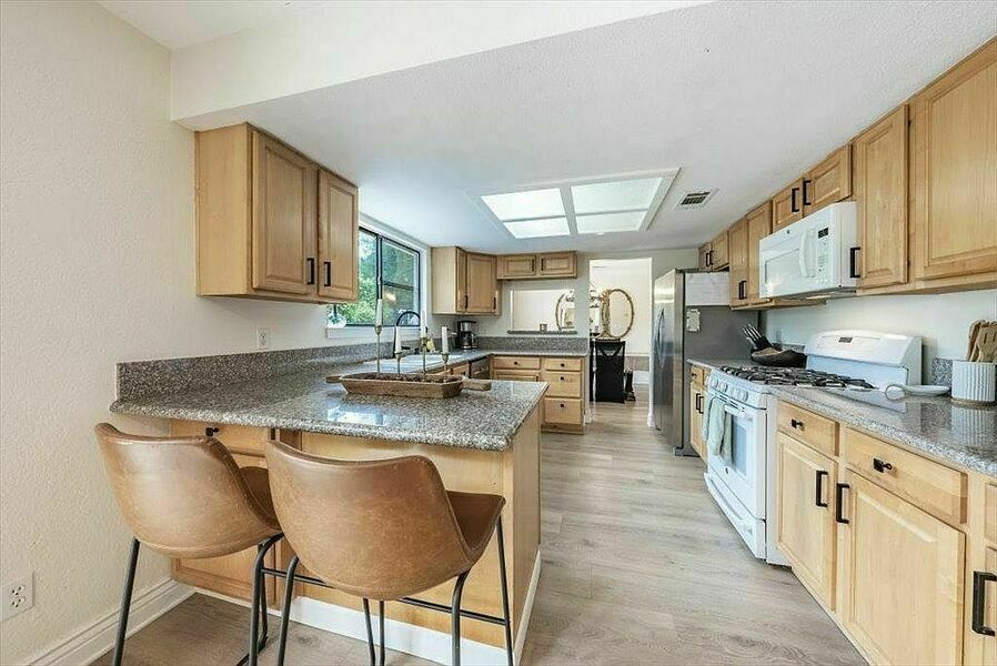 Downstairs, you’ll find a private bedroom & bathroom ideal for guests or multi-generational living as well as a convenient indoor laundry room. Upstairs, the spacious master suite is accompanied by 2 additional bdrms & a full bath w/ dual sinks, providing plenty of room for everyone. The kitchen has granite counter tops & plenty of storage & overlooks the sparkling backyard pool, allowing you to keep an eye on the kids while enjoying time indoors.